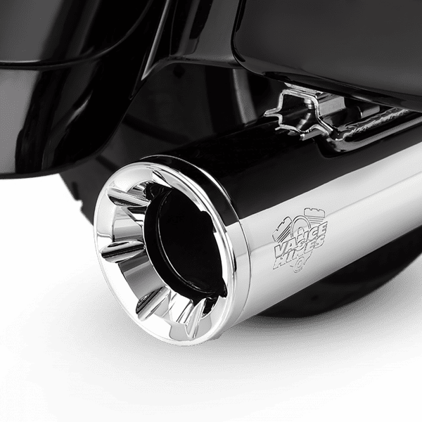 Featuring large 4-inch mufflers finished with race-inspired CNC machined billet end caps, Eliminator 400s are tuned to give Harley-Davidson baggers a deep and aggressive roar.